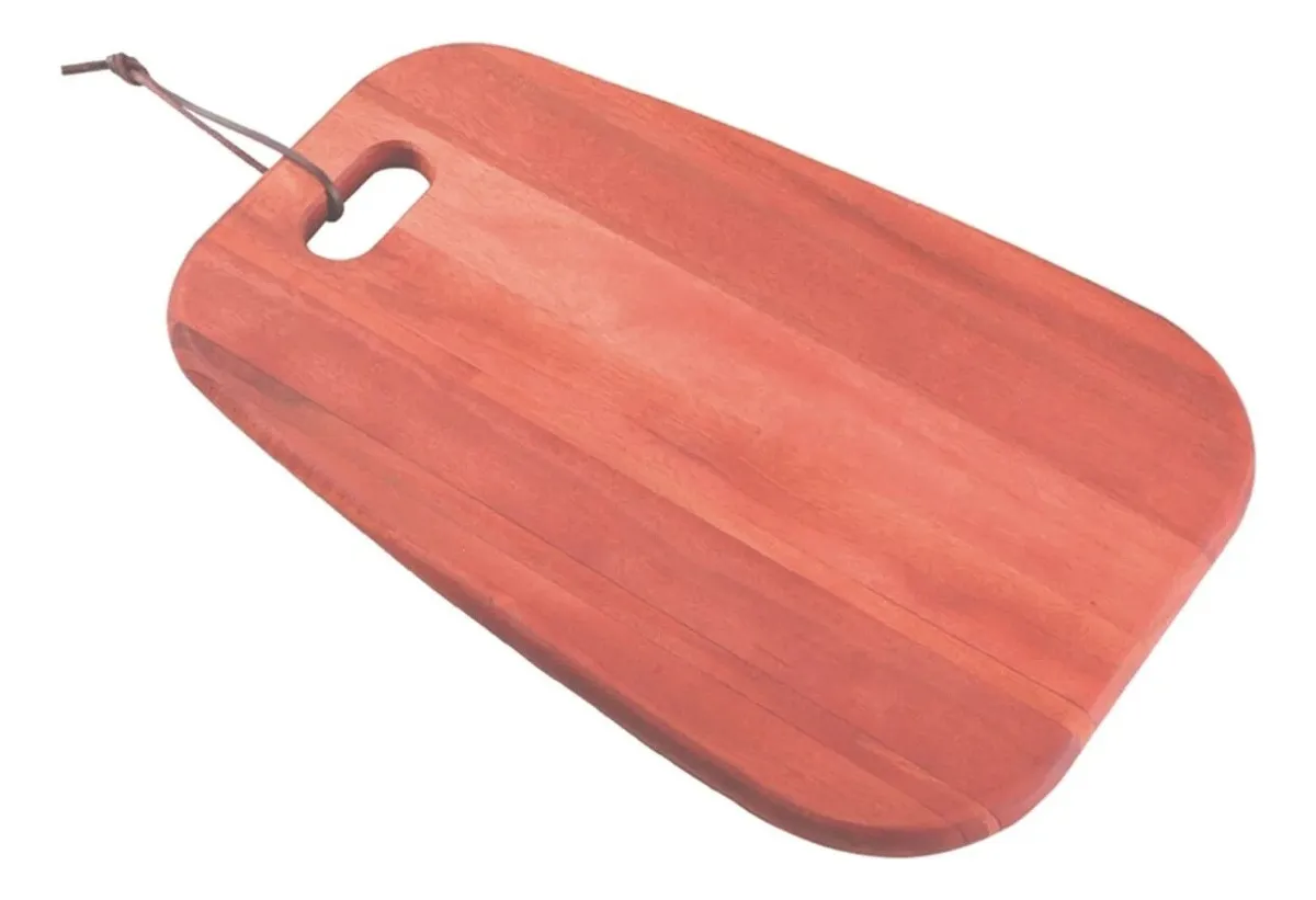 Tabua para Frios de Madeira Mogno Africano Retangular com Alça e Tira de Couro